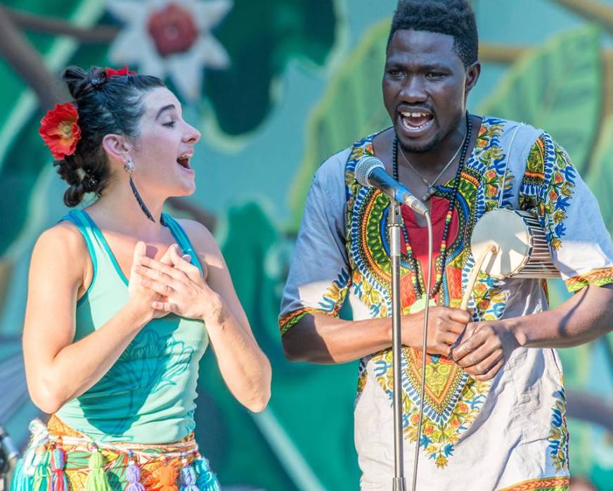 Marita Kennedy-Castro and Namory Keita singing with New Moon Ensemble at Congress Square, Portland, ME. Summer 2016.